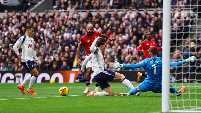 第31分钟,热刺后防出现失误,曼联立即开始强势进攻,阿玛德迪亚洛传中,姆贝莫头球攻门,维卡里奥只能目送皮球入网。